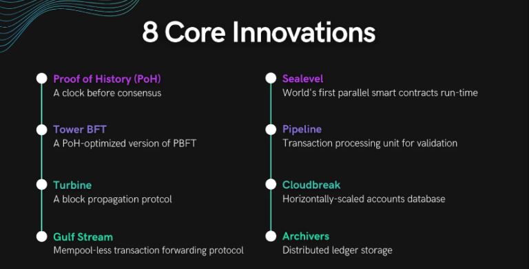 - 它使用权益证明 (PoS) 算法与历史证明 (PoH) 相结合以提高效率。