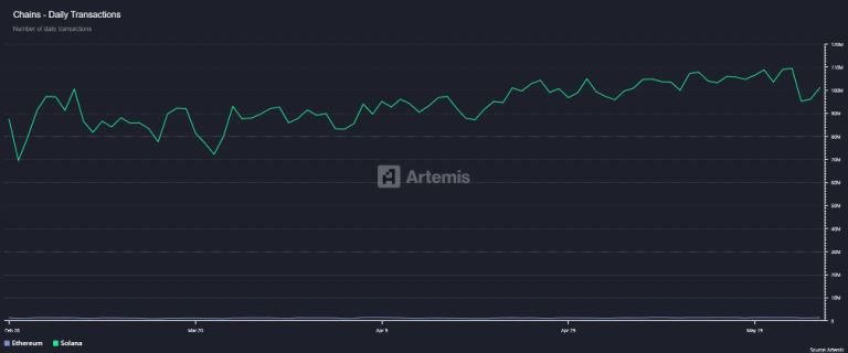 以太坊的平均交易费用从 2025 年的 10 美元高点大幅下降至 5 月份的 0.7 美元,但仍高于 Solana 的 0.01 美元平均费用。由于费用低廉,Solana 是最高效的区块链之一,因此是 dApp 的理想选择。