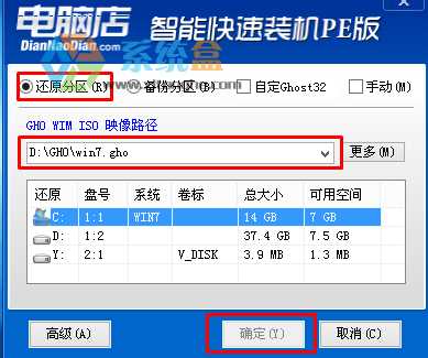 7、分区完成后,就可以开始安装Win7系统了,运行桌面上的 一键装机或 onekey ghost 等如下图,选择Win7.GHO,选中C盘,然后确定就可以开始安装过程;