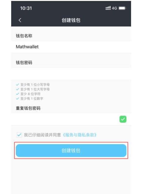 4、输入地址信息后,点击创建钱包,(请妥善保管助记词)