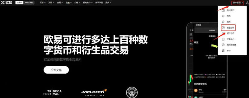 1、打开欧易交易所(新用户可以直接点击注册进行交易买卖),点击右上角【资产管理】—【资金划转】