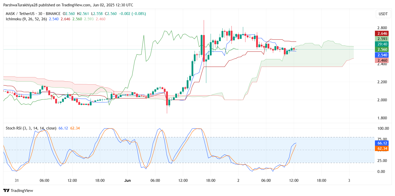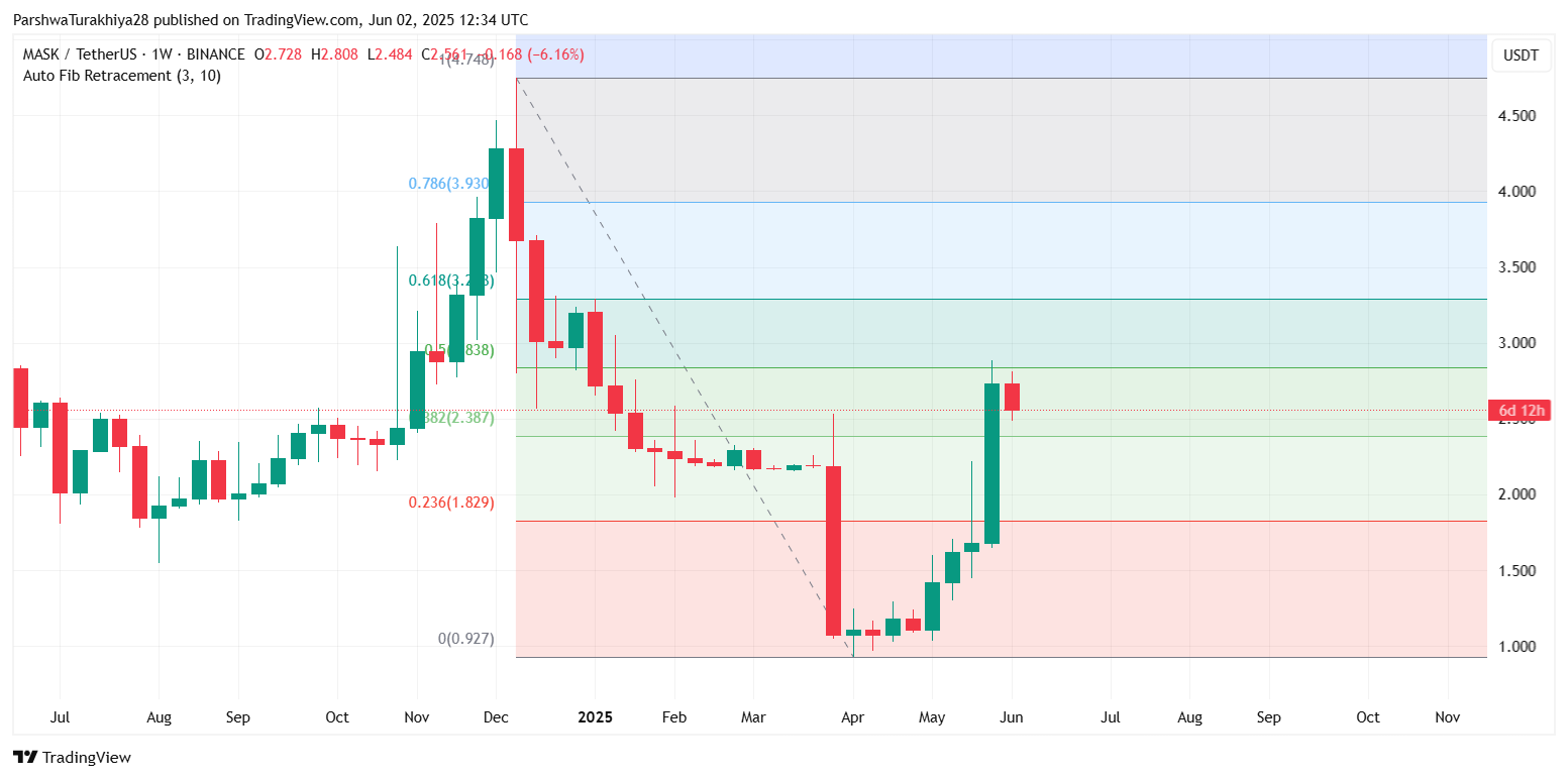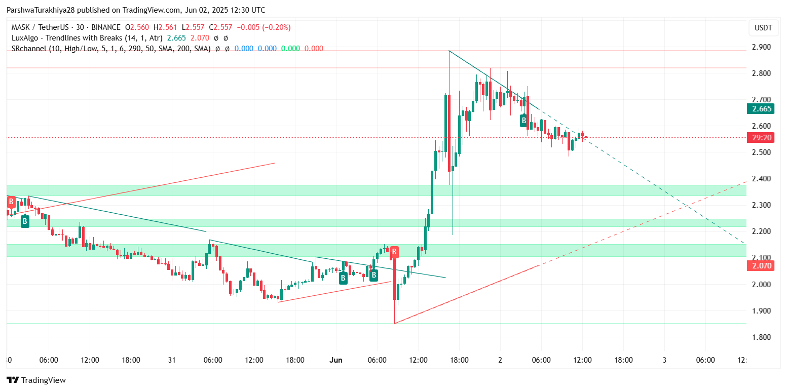 2025 年 6 月 3 日 Mask Network (MASK) 价格预测:涨势在 2.80 美元关口附近暂停,多头守住关键支撑位