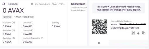 接下来就可以将资产从支持雪崩链的交易所(目前支持的交易所有Binance、Gate.io、Bitfinex、、Kucoin、火币等等)转移至雪崩钱包的X-Chain Address