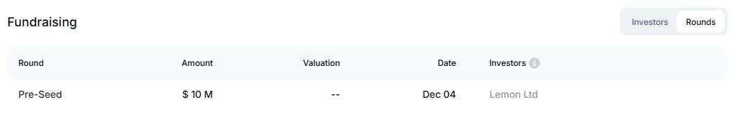 Earos 于 2024 年 12 月 4 日进行了 Pre-Seed 的融资,融资金额为 $10M,由 Lemon Ltd 投资。