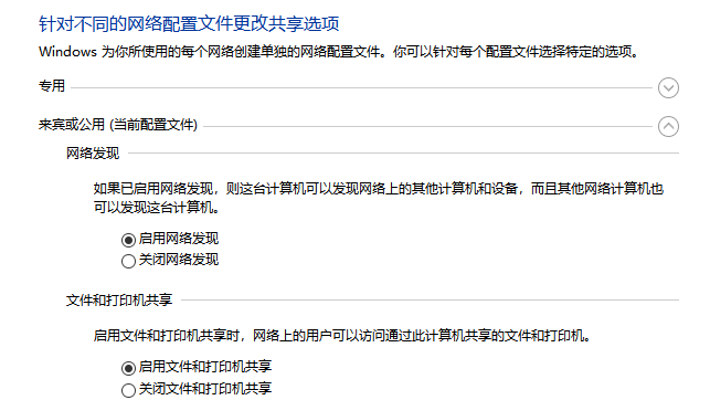 2.确保勾选:启用网络发现、启用文件和打印机共享,点击“保存更改”。