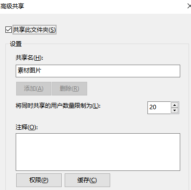 4.勾选“共享此文件夹”,点击权限,根据需要设置权限(如“读取”或“完全控制”)。