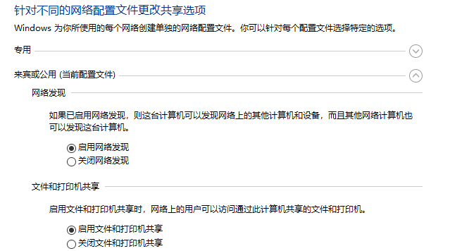 2.启用"网络发现"和"文件和打印机共享",关闭"密码保护共享"(便捷但降低安全性)或设置共享密码(推荐)。