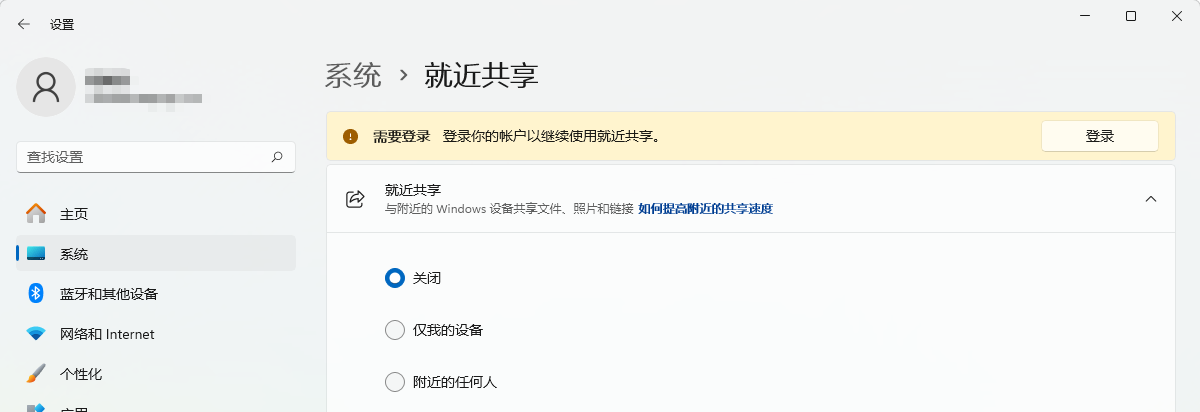1.打开设置 → 系统 → 共享体验,打开 “附近共享”,选择 “所有人” 或 “仅联系人”。