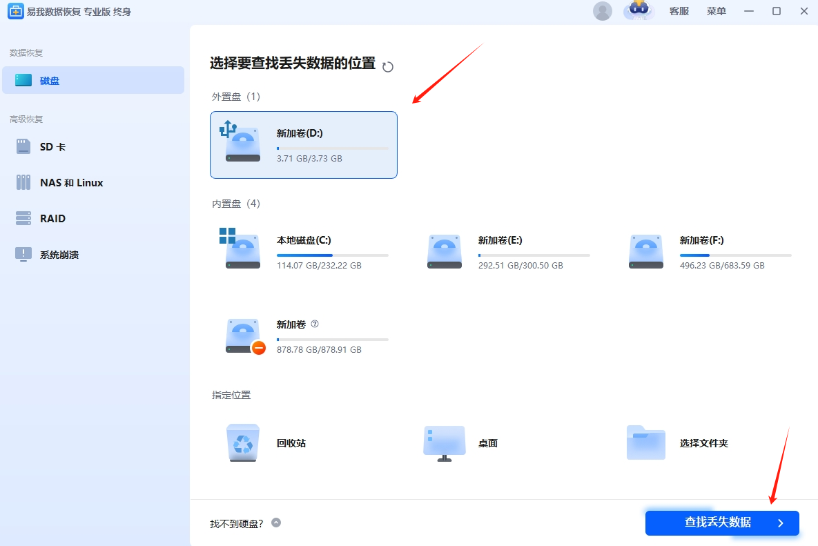 该软件操作简单,不占用硬盘空间,下载安装好易我数据恢复软件后,按照下面的几个步骤就能轻松恢复被病毒删除的U盘文件: