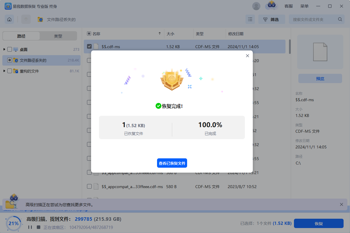 4.等待保存完毕可点击“查看已恢复的文件”进行查看。