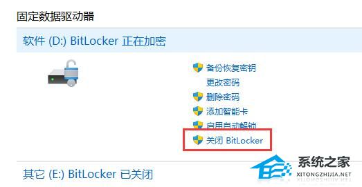 5. 最后在弹出窗口再点击“关闭bitlocker”即可解决。