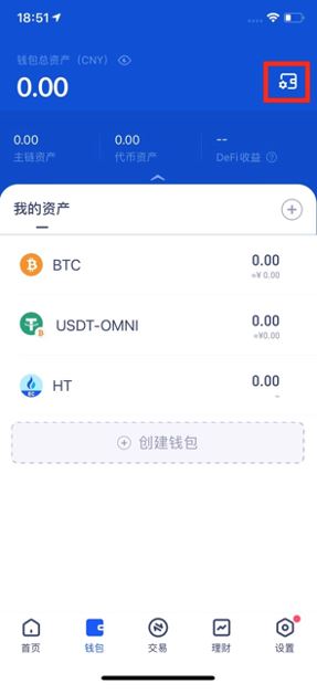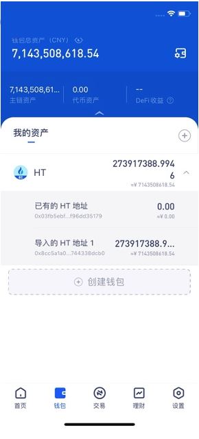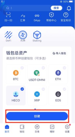 2、已创建钱包,可通过点击“我的资产”等页面钱包标示,选择Heco,“创建钱包”。