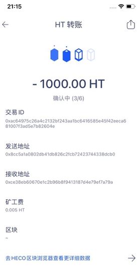 6、 交易上链并确认,Heco需要20个区块确认