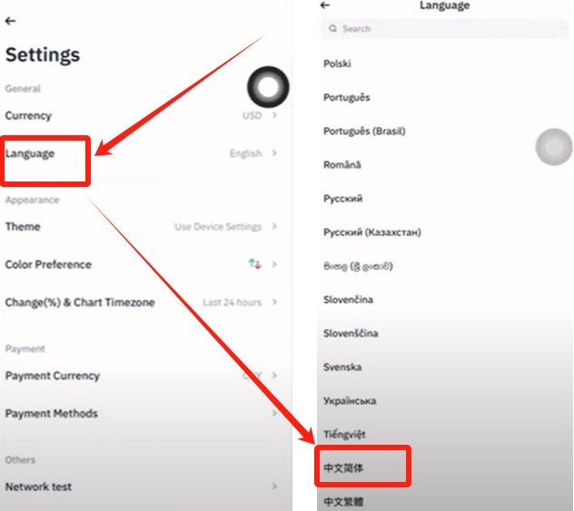 币安Binance设置中文语言