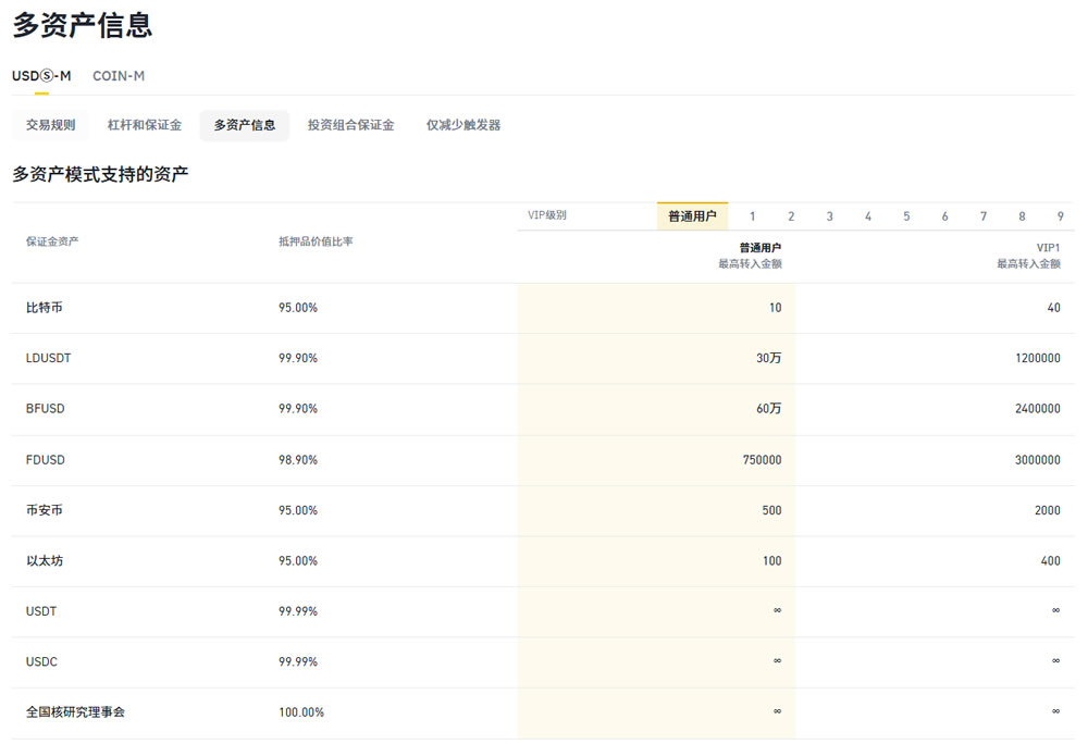 目前币安联合保证金模式支持以下几种资产作为保证金:
