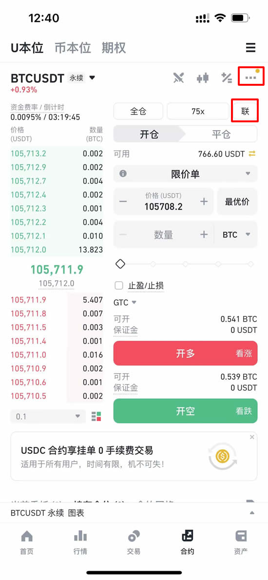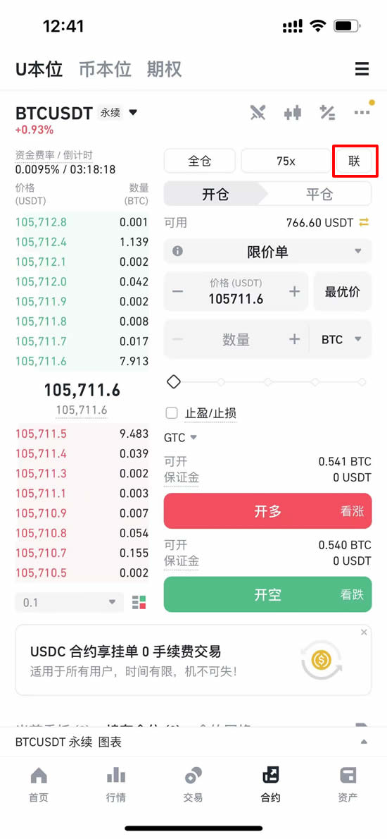 切换成「联合保证金模式」后,实际操作的方式跟你原本开仓没有太大差别。