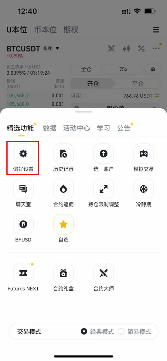 从U 本位合约页面点击右上角「三条线...」 → 在功能区点击「偏好设置」 → 点击「资产模式」切换成你要的模式