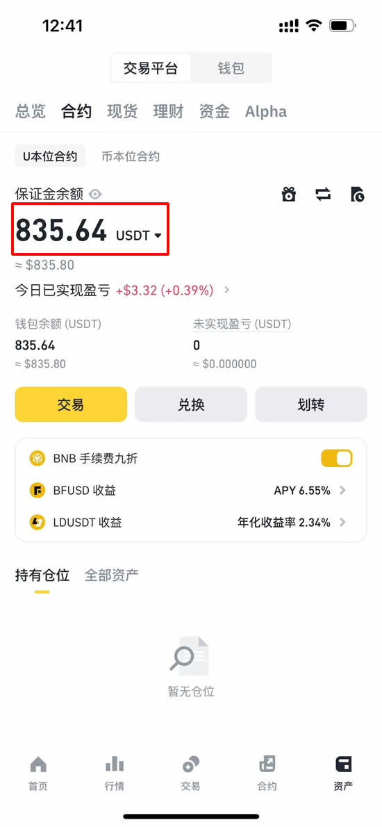 ※ 小提醒:记得先把你想当保证金的币种,转到U 本位合约钱包中。