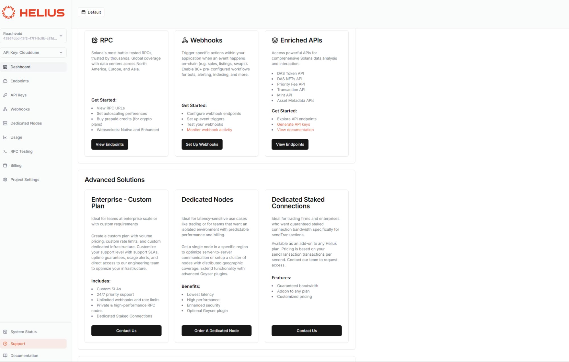 Helius 只专注于 Solana 生态,在构建产品时也始终以开发者为中心。为了简化开发人员在 Solana 上的应用开发过程,提高开发效率和用户体验,Helius 目前推出了三大类产品和服务,分别是: