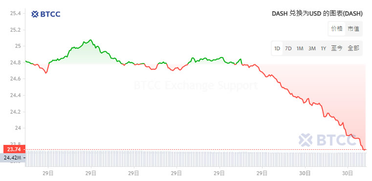 截止6 月28 日,DASH 的交易价格为$24.70,在过去24 小时上涨了3.79%,最高达到$24.70。当前价格距其在2017 年创下的$1,642.22 历史高点仍有98.5% 的距离。