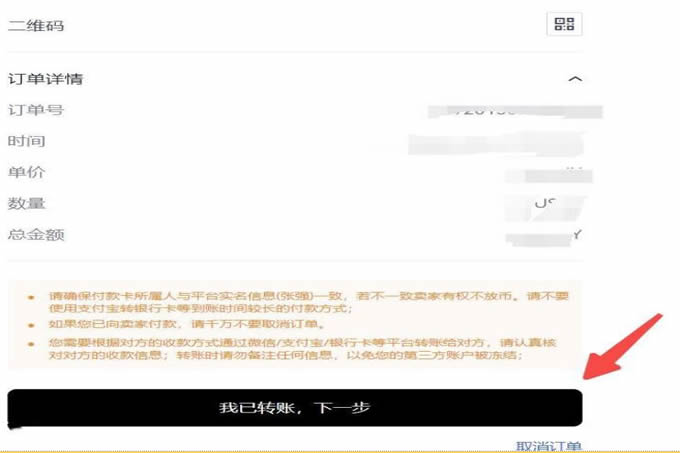 6.根据卖家提供的收款方式,在第三方支付软件完成支付后,页面点击我已付款下一步,等待卖家确认收款,完成该笔订单。