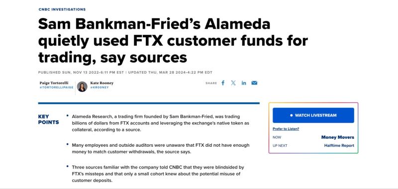 来源:https://www.cnbc.com/2022/11/13/sam-bankman-frieds-alameda-quietly-used-ftx-customer-funds-without-raising-alarm-bells-say-sources.html