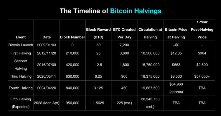 即将到来的第五次减半:预计在2028年3月/4月