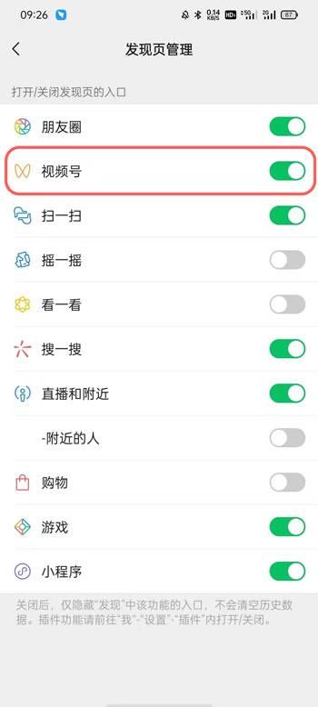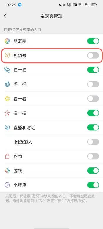 5、最后开启【视频号】右侧的滑块,开启视频号入口;