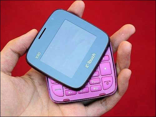 天语 X90胭脂手机,拥有紫色、红色、黑色三环设计,机身尺寸为69×69×17.5mm,重96g,外观小巧精致,靓丽十足。采用旋转式设计,把2.4英寸的大屏幕很好的掩藏在其中。QVGA 240×320像素触摸屏,26万色显示,清晰明丽,按键也很大方,输入便捷,触感也很好。