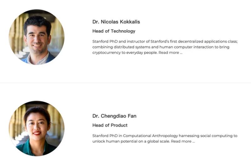 Pi Network 诞生于2019 年3 月。据官网描述,团队由美国史丹佛大学人类学博士 Chengdiao Fan 以及去中心化应用程式讲师Nicolas Kokkalis 共同创办;但官网除了两人资料之外,就没有再公布任何团队成员资讯。