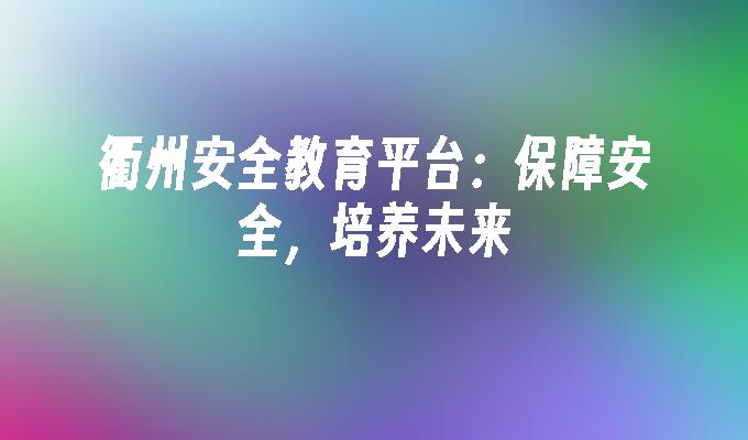 衢州安全教育平台:保障安全,培养未来