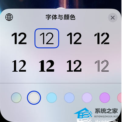 2、在锁屏自定义界面,点击时间的那个框框,就会弹出时间字体以及颜色设置的弹窗,在这里你就可以根据自己的喜好自由切换字体和颜色。