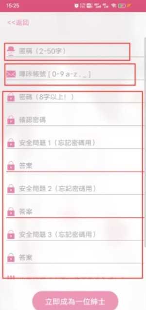 1、下载并打开APP,在主界面登入的时候选择【免费注册成为绅士】进入注册页面;
