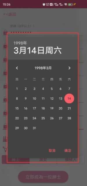 4、在生日填写中需要填写18周岁以上,该软件只为成年人提供。