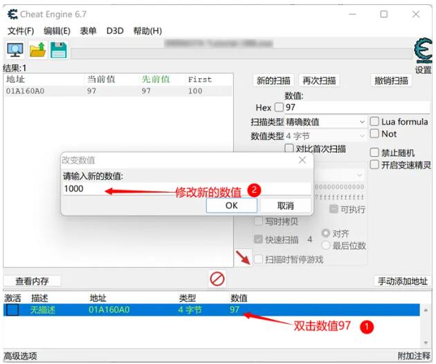 4、修改数值:根据搜索结果,修改游戏中的数值,如增加金币数量。