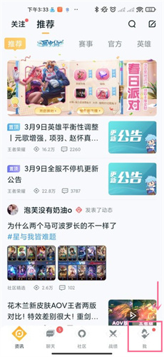 1、打开"王者营地"App,进入之后点击我的。