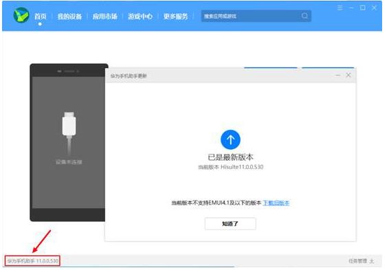 1、将华为手机助手升级至最新版本。在手机电脑上打开华为手机助手,点击左下角版本号的位置就能进行升级。