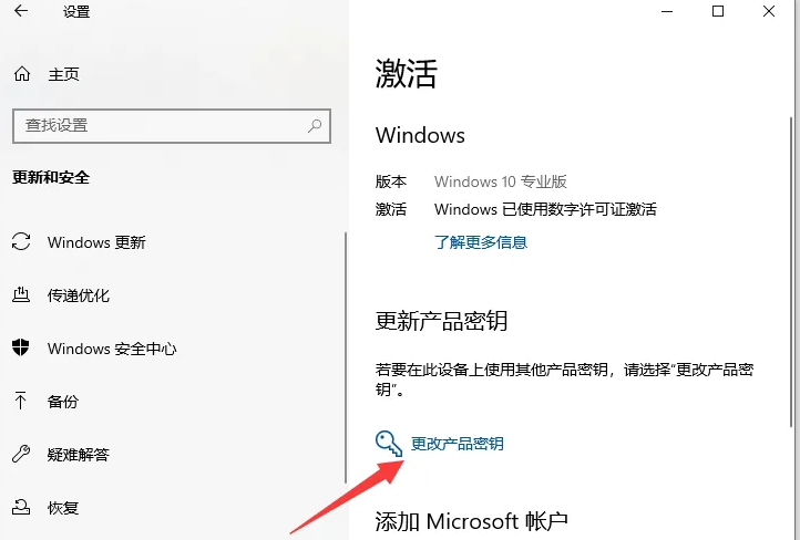 4、选择更改产品密钥。(在下的是已经激活的,没有激活的显示的应该是输入产品密钥)