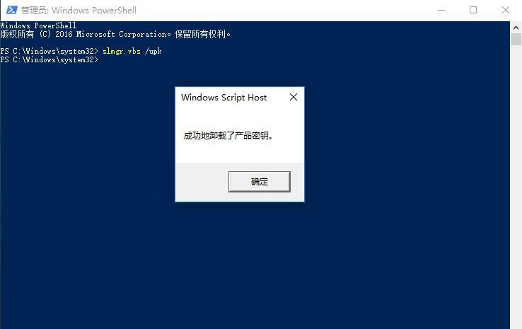 2、复制这个命令:slmgr.vbs /upk,在命令窗口鼠标右键,会自动粘贴此命令,按回车确定,卸载之前的密钥,弹出窗口显示"成功地卸载了产品密钥";【如果提示找不到密钥,不用管,直接跳到下一步】。