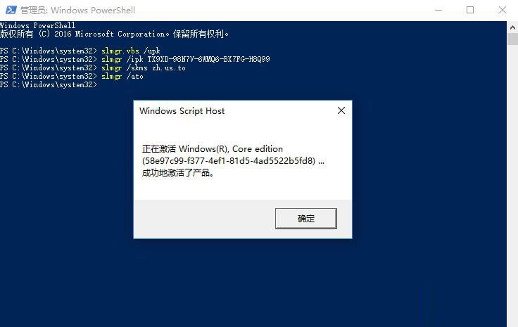 5、复制这个命令:slmgr /ato,右键自动粘贴此命令,按回车执行,此时将弹出窗口提示:"成功地激活了产品"。