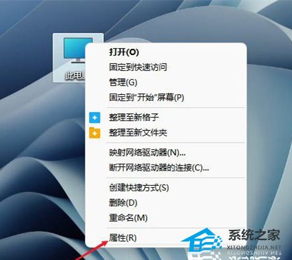 1. 桌面右键点击【此电脑】,在打开的菜单项中,选择【属性】。
