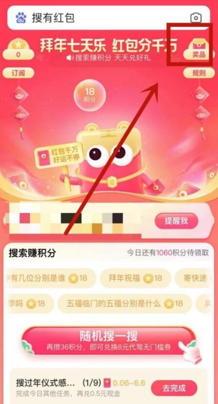 2、进行其中的搜索任务以后打开就能够得到红包奖励。