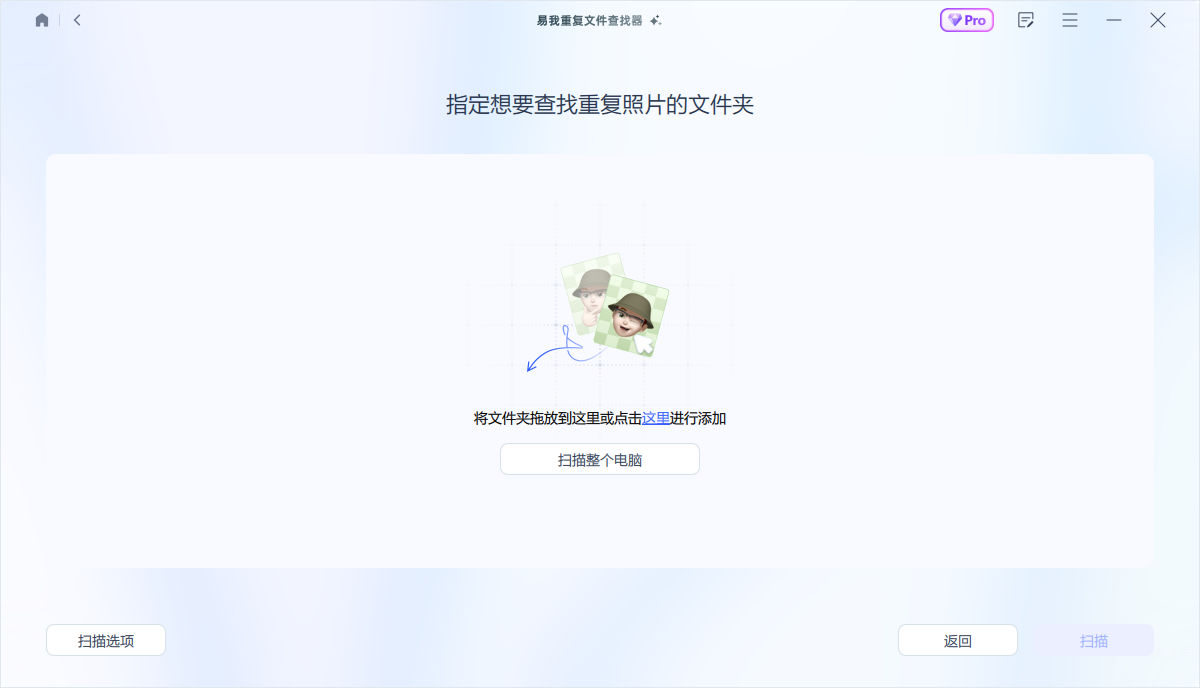 步骤2:选择好需要排查的文件夹或分区之后,点击扫描,软件将开始深入扫描并识别出文件夹中的重复照片。