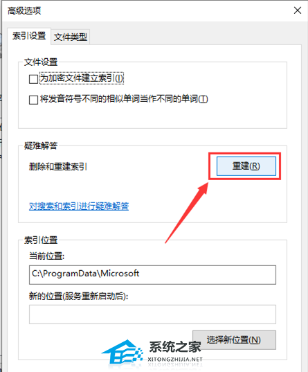 4. 第一个【索引设置】选项卡中间部分删除和重建索引,点击【重建】;