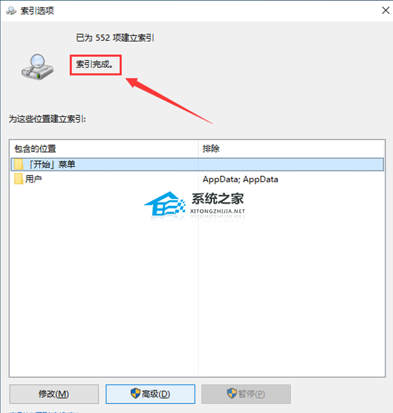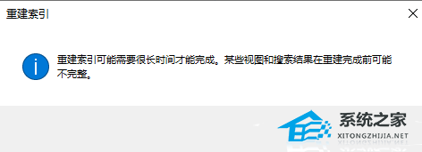 5. 重建索引提示框,重建索引可能需要很长时间才能完成。某些视图和搜索结果在重建完成前可能不完整。点击【确定】;
