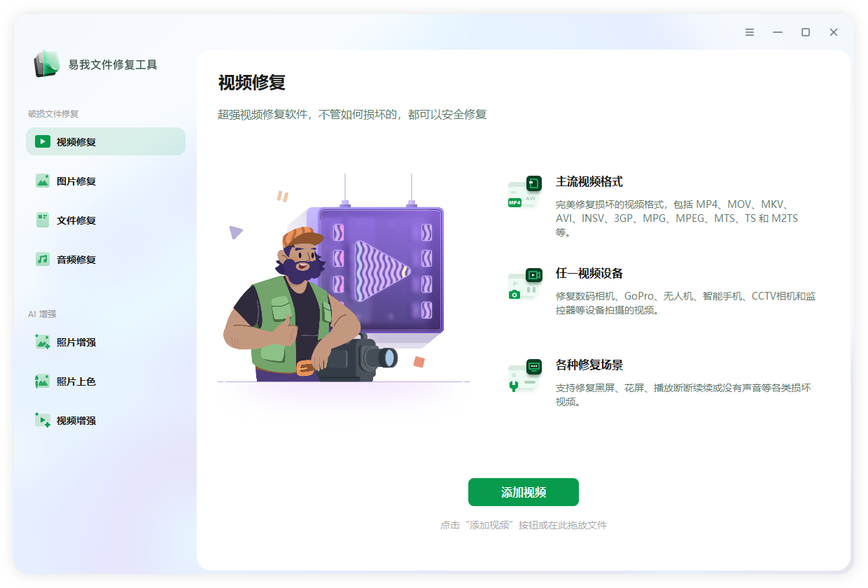 首先推荐的是专门的视频修复软件,这类软件能够通过扫描视频文件,检测损坏区域并进行修复。易我文件修复工具是一款功能强大的修复工具,可以帮助您轻松修复损坏或打不开的视频,支持各种视频文件格式,包括MOV、MP4等。除此之外,还支持修复文件、图片等等,满足不同的修复需求。