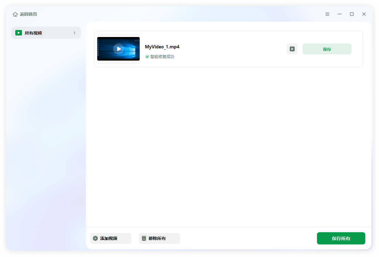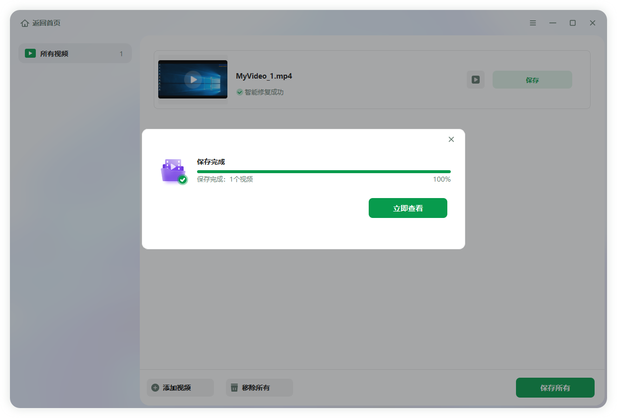 步骤3.等待视频修复完成,点击“保存”选择保存的位置。
