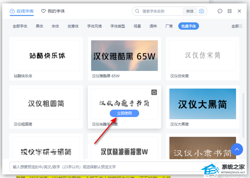 5、将鼠标点击自己想要添加的新字体的框中,在出现的【立即使用】按钮上进行点击一下,下载安装该字体。