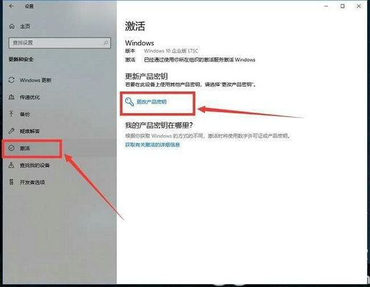 3、接着点击左边的“激活”,然后点击右边的“更改产品密钥”。