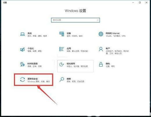 2、进入到windows的设置界面,然后点击“更新和安全”。